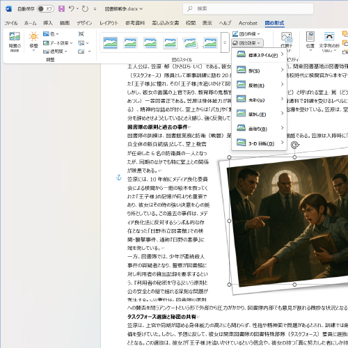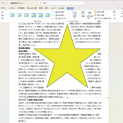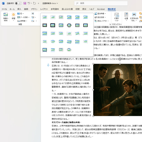 次にサイズや見た目を調整して、文書に馴染ませましょう。