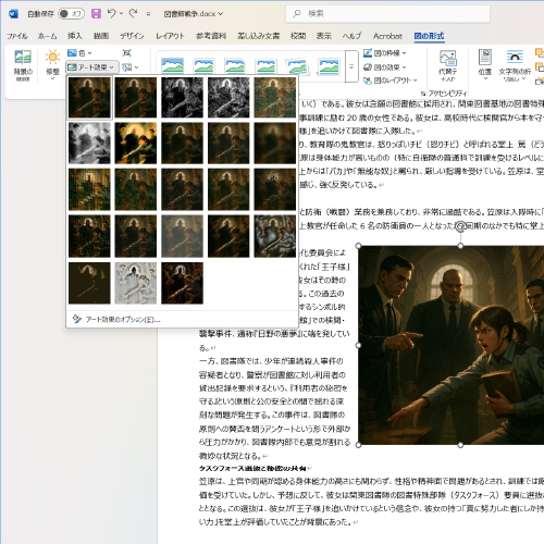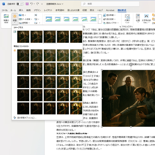 画像をクリックし「図の形式」タブを開くと、様々な調整が可能です。