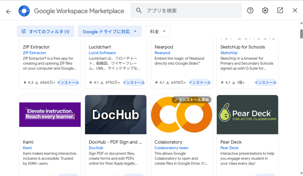 Google ドライブに対応の中からColaboratoryを見つけてインストール。