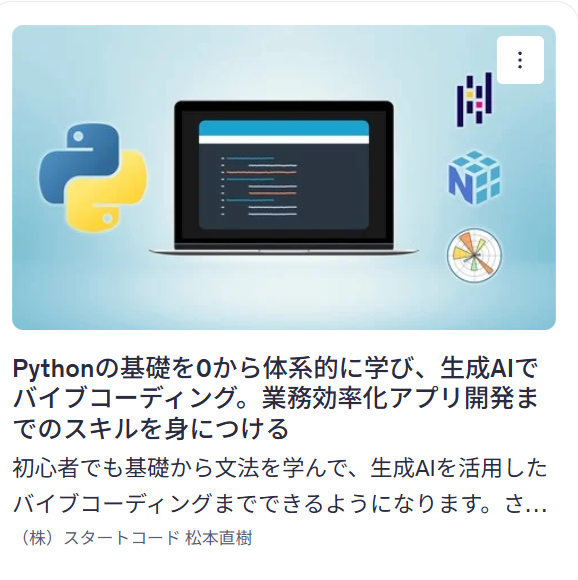 Pythonの基礎を0から体系的に学び、生成AIでバイブコーディング。業務効率化アプリ開発までのスキルを身につける